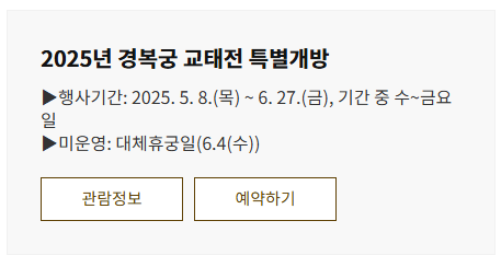 그 중에서도 교태전 구역은 왕비의 생활 공간으로, 일반 개방이 드문 구역이라 더욱 특별한 경험을 선사하죠.